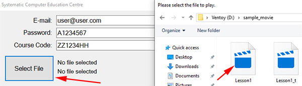 Click "Select File", choose the Lesson1.mp4 file extracted earlier, click "Open", then click "Login", as shown in the image below: